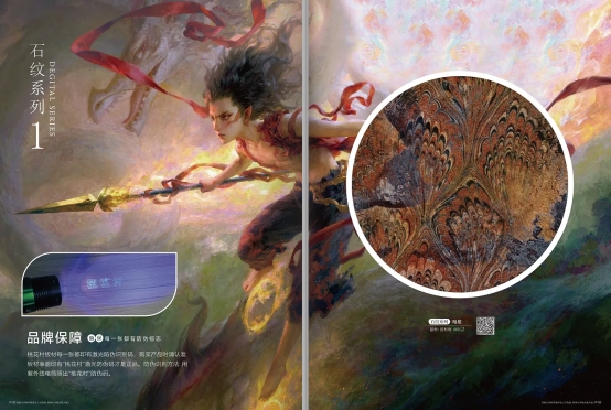 “石紋”系列的靈感源自哪吒中的經(jīng)典色彩元素,通過(guò)大膽的色彩搭配與細(xì)膩的紋理設(shè)計(jì),打破了傳統(tǒng)東方美學(xué)中“含蓄”、“淡雅”的刻板印象。桃花村生態(tài)板以極具沖擊力的視覺(jué)語(yǔ)言,重新詮釋了東方美學(xué)的內(nèi)涵,既保留了傳統(tǒng)文化的精髓,又賦予了現(xiàn)代設(shè)計(jì)的張力。