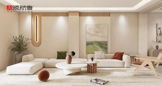 客廳·歡聚主場(chǎng):團(tuán)圓時(shí)刻,客廳是情感交匯的核心。領(lǐng)航者家居定制的一體化電視背景墻與儲(chǔ)物柜,精選自然紋理板材,色澤溫潤(rùn)雅致,既煥升空間整體格調(diào),又能巧妙收納日常雜物,為每一次歡聲笑語(yǔ)留出整潔寬敞的天地。